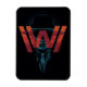 Check out this portrait of the Man in Black, featuring the Westworld logo overlaid in red.