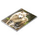 This is a photograph of a beautiful arctic wolf standing behind a fenced area with green forest surroundings in the springtime. This arctic wolf's fur is wet from the recent rain. It is staring intently at something to its right as it stops pacing around for a second. The slight blur of the background gives this photo a dreamy feel. Is this a special gift for someone? You can customise it to have a name, initial or message on it.