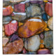 Wet wall of snones in a wet snow and rain winter weather. Colourful stones of different shapes. Some of them are covered with snow. Simulated oil painting from a photography. Shower curtain to decorate your bathroom for fun and good mood.
