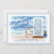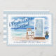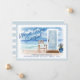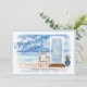 Send this beautiful moving announcement to your friends and family. We've illustrated this beautiful watercolor beach scenery that depicts a deep blue ocean horizon and sky coastal background. "We've Gone Coastal" is added over the illustration. A light blue coastal style door with a welcome mat, potted plant, chair, and seashells placed in the foreground with the beautiful coastal landscape behind. A white stamp background is also incorporated into the design. The reverse side features a matching light blue stripe background. All illustrations are hand-drawn Original artwork by Moodthology Papery