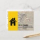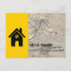 Two parts in front of this New Home Postcard: one with yellow rectangular shape in left with a little black house and tiny envelope, second part of the postcard: map as background to customise. On the map is placed "We've moved" with shadow (no customisable). All infos on the back of the postcard are customisable. You can easily change map and text colour, font, size and position by clicking the customise button. Available with white small house.