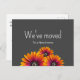 We've moved moving announcement postcard, with a boho daisies design on a grey background. With customisable lettering, you add your own information. Great for letting loved know about your new home.