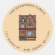 Cute house return address envelope seal. The round sticker template makes it easy to change the information with your name and return address.