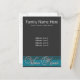 This elegant postcard is perfect for your sending out to your friends and family after you've moved! Features a deep grey background, with 3 lighter blue lines at the bottom and the text "We've Moved" in cursive type. Card is a template and much of the text is customisable. Add in your family last name, names of everyone in your family and your new address. The perfect change of address postcard!