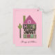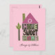 This colourful moving announcement features whimsical pink and green Home Sweet Home text that is playful and cute. A fun way to let friends and family know that you have moved to a new home!