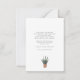This moving announcement card is modern and features quirky, boho plants, a couch, and a cat relaxing on it. Check out the rug and the wall art and vintage overhead lamps. Something your recipients would smile about