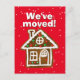 Change of address postcards with cute gingerbread house cookie. Xmas moving postcards with fun typography template design. Custom move text; We have moved! We've moved! Add your new address of your house on the back. Fun winter Holiday moving cards for new home, housewarming party or new business location.