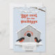 Let your friends and family know that you have a new home! These whimsical 5" x 7" holiday moving announcement cards feature two modern robins facing each other on top of their perch in front of their birdhouse with "home sweet home" bordering the birdhouse door. Snow is falling on the snow covered birdhouse with a sky blue background.