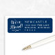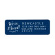 Elegant white "We've Moved!" script and refined typography bring stylish charm to this classic navy blue moving announcement return address label. Perfect for letting friends and family know about your new address. Personalise with your family name and new address. A sophisticated finish for every moving announcement envelope.