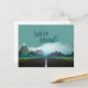 Travel theme with road change of address postcards- Reads 'We've Moved' in handwritten style lettering with a drop shadow on front. Fun background displays a country road somewhere in the mountains with a cloudy sky in the background in shades of grey, green, aqua, teal, sky blue, and turquoise. Ready to be personalised on back with your name and new address using the custom text template. More change of address cards are in our Zazzle.com/angela65* shop. All text is completely customisable- wording, colours, styles, sizes.