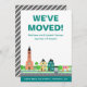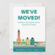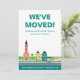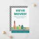 This modern moving announcement features a colourful neighbourhood with a beautiful church. Flip the card over to reveal an elegant grey and white stripes pattern on the back of the card.