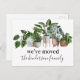 Modern moving announcement postcards featuring watercolor botanical foliage houseplants, and your new address details on the reverse.