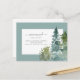 This design features watercolor pine trees and custom script calligraphy on a simple background.