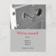 A postcard for new home announcements featuring a close-up photograph of a vintage door lock and key. The text can be changed to suit the occasion, for example, a housewarming party.