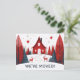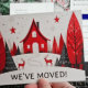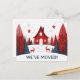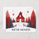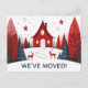 Announce your new address with this cosy Scandinavian-style "We've Moved" postcard, featuring a charming red house, reindeer, and festive Nordic forest details. Ideal for holiday season moves, this flat postcard design is easy to mail and beautifully themed for winter. Customise it with your family's name and new address to spread the news in style.
