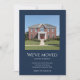 Simple We've moved navy blue moving announcement, with photo design and customisable lettering. You also add your own photo to make it special. A great way to let loved ones know about your new home.
