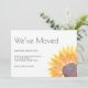 This moving announcement card is decorated with a yellow watercolor sunflower and stylish typography.