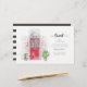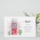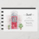 This card features a watercolor red front door, red brick walls, two house plants on each side of the door, and the house number on the door.