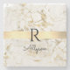Wh & Gold Marble Gold Bar, DIY Black Name Monogram Stone Coaster
