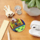 The classic arcade or carnival game "Whac a Mole" is bright with neon green, red, yellow and blue. This keychain is fully customisable.