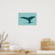 A beautiful graphic design of a whale jumping in a blue sea. Good to adorn your house walls or office. It will fit fine in a beach house decoration.