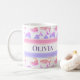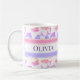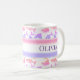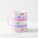 Cute pink, purple and yellow personalised with name coffee mug with sweet whales swimming on it. A perfect birthday gift, housewarming, Christmas gift.