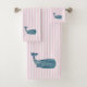 Whale Nautical Pink Stripe Painting Bath Towel Set