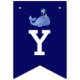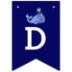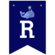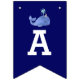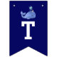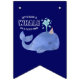 These cute birthday bunting flags feature a cute watercolor whale with a party hat and trendy typography on a navy background. Personalise the birthday bunting flags by adding your child's name, age, and event date.