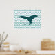 A graphic design of a whale tail on a chevron sea. Good to adorn your home or office walls. It will fit fine in a beach house decoration.