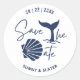 Whale Wave Seashell Beach Typography Save The Date Classic Round Sticker