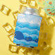 Sweet seaside can cooler with a trio of whales emerging from the ocean waves.