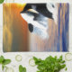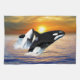 Whales at sunset tea towel