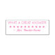 This positive rubber stamp design features the motivating message "WHAT A GREAT ANSWER!" and a custom teacher's, educator's or tutor's name. It also features a decorative star shape. It could be used by a school teacher or educator when marking assignments, to acknowledge that the student has done well.