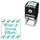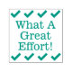 This positive rubber stamp design features the praising message "What A Great Effort!". It also features a decorative checkmark pattern. It could be used by a teacher, educator, or tutor when marking assignments, to indicate that the student has done well.