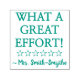 This encouraging rubber stamp design features the motivating message "WHAT A GREAT EFFORT!" and a customised teacher's or educator's name. It also features a decorative representation of stars. It could be used by a teacher, educator, instructor, or tutor when marking assignments, to indicate that a student has done well.