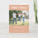 Send out a fun modern holiday card featuring the phrase "What A Year!" in a cool white script font on a peach coloured background above your photo which goes across the centre. Below your image, custom text reads "HAPPY HOLIDAYS" and has your name and the year in a stylish white serif font. The inside left is filled by another customisable photo, and the inside right features your custom greeting and names. Add your own photos and personalise the text in the sidebar. You can delete the text inside if you prefer to write your cards by hand.