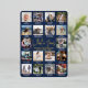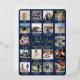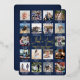 What a year to remember! Send stylish joyful greetings and share 18 of your favourite pictures with a custom 5x7 photo collage navy blue and gold foil holiday card. Text on this template is simple to personalise to include any wording such as Merry Christmas, Happy Holidays, Seasons Greetings, New Years Cheers, etc. (IMAGE PLACEMENT TIP: An easy way to centre a photo exactly how you want is to crop it before uploading to the Zazzle website.) Front side of card is printed with real metallic gold foil on a navy blue ombre background. The design also features trendy handwritten style script calligraphy, modern typography family name and year, a personalised message on back, and a unique photo grid of 18 square pictures with captions. Family and friends will love displaying this elegant customised card.