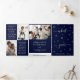 Pretty navy blue card with snowflakes and What a Year in script font is not only trendy but a really great card for sending holiday greetings with photos. There is a lot of room in this card for messages and photos. Add your holiday greeting, family name and year as well. This card is a stunner and people will love to display it.