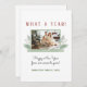 A perfect new year greeting card in this time of pandemic. Greet your family and friends a happy new year with this chic and elegant card featuring a laptop screen with your personalised photo on it, a chic watercolor plants design and a script lettering saying “What a year!”