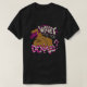 I give wanted to give this a 4 instead of a 5 because these Basic DARK T0shirts run unexpectedly SLIM or Narrow. Which is great if you do not have a potbelly, but I have a paunch. It isn't the shirt's fault that I've got a beer belly. The design and shirt itself is a quality cotton shirt. The color is more of a deep purple, but still a very pretty color. The Basic DARK T-shirts run a bit SLIMMER than the Basic Ts. The neck is a fraction narrower (or seems to be narrower) also. I'm a paunchy middle-aged woman and my neck is 12 inches (31cm) thick and the neckline fell about the same as in the photo of the man, and I had the desire to tug it a bit. So if you're a thick necked man or like loose shirts, be aware these are slimmer shirts. Once I get rid of my lockdown paunch it'll look great. The shirt washed well in cold water with no apparent bleeding. We don't have a dryer, so it hung dry. Did not shrink. Love the colors and the design. The design looks smaller on my shirt than it does on the model on-line. But still, it looks good on the shirt. The printing looks as it does on the model, just the size seems fractionally smaller. Washed garment in cold water, hung dry and design appeared unaffected.