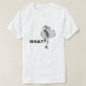 Elegant heron bird stands on one of its legs, holds the question WHAT? in another leg, and looks away. Funny customisable t-shirt for anyone. You can change or delete the text. To change the font, just use the CUSTOMIZE button. You can transfer the design to another product of your choice. Do not forget to choose another colour, style, size, or gender of the apparel. Have fun and buy one. Do it now, tease your friends.