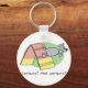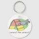 Funny agility cartoon has a fat grey dog leaping off the a-frame, just above the yellow contacts. Below reads, "Contacts? What contacts?" Silly dog lover humour for those in the dog sport of agility. A-frame is pink and yellow, and the background is green. This agility dog keychain makes a unique gift!