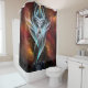 Just Below Is A Copper Gold Pedestal Structure With Fiery Clouds In The Background And A Colourful Rock Formation In The Foreground Of Blue, Violet, Green And Orange Colours.
