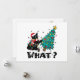 WHAT Funny Black Cat Santa Pushing Christmas Tree Holiday Card
