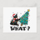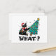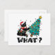 WHAT Funny Black Cat Santa Pushing Christmas Tree Holiday Postcard