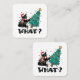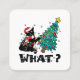 WHAT Funny Black Cat Santa Pushing Christmas Tree Square Business Card