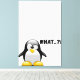 A playful and humourous artwork featuring a cute cartoon penguin with a puzzled expression. The bold "WHAT..?!" text adds a fun and quirky touch, making it a perfect piece for those who love lighthearted, cheerful, and unique wall art. Great for kids’ rooms, offices, or anyone who enjoys a good laugh.