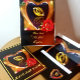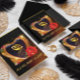 A very unique and beautiful envelope to mail your wedding invitations. These envelopes have a printed image of an acrylic painting of two gold wedding bands inside a gold heart. There is a love red rose on the side of the heart. You can customise the envelopes for your special announcement. There are matching customisable invitations available.
