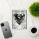 Beautiful save-the-date wedding invitation. These invitations have a printed image of an acrylic painting of two silver wedding rings. These rings are standing side by side inside a heart-shaped bubble.