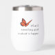 Wine tumbler with picture of a monarch butterfly and the saying What if Something Good is About to Happen. Make someone happy. Cheer up a friend. Encourage yourself with every sip. Stop the negative thinking!